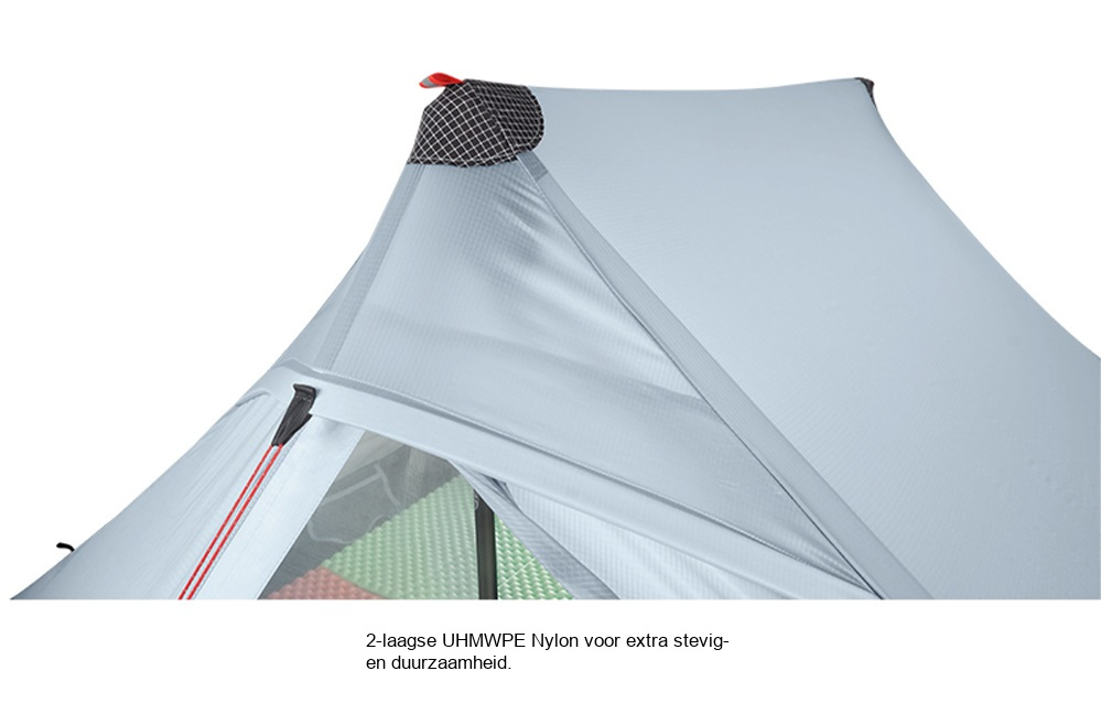 Buitentent: 20D dubbele silicium stof (waterdicht index 2000 MM)