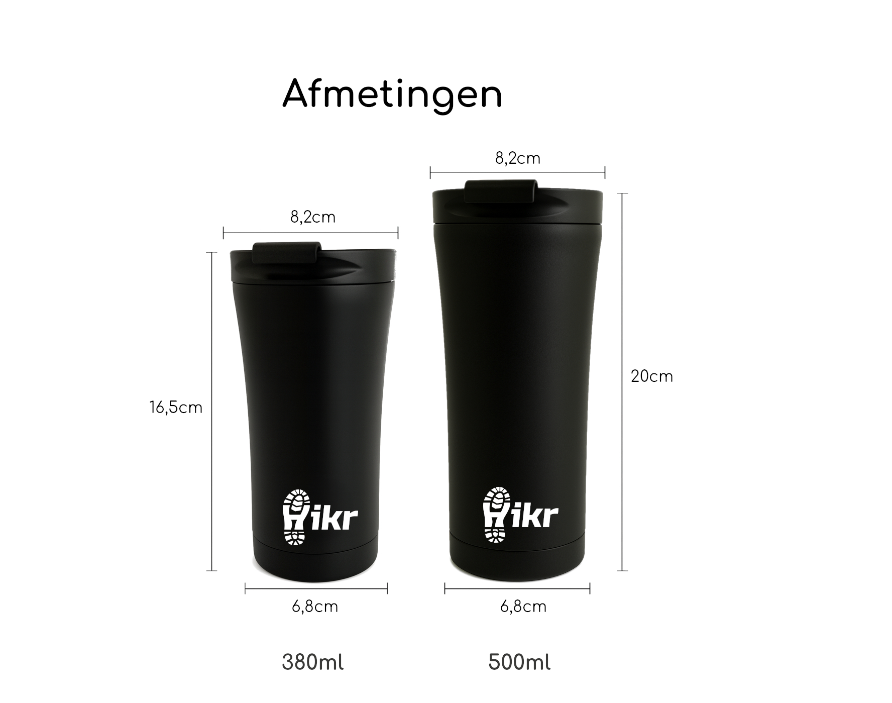 De thermosbeker is verkrijgbaar in twee formaten (380 ml & 500 ml), zodat je altijd een variant vindt die bij je past.