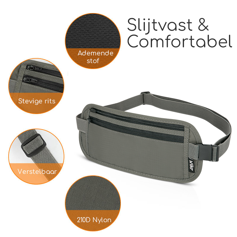 De veiligste moneybelt: ultra dun met onopvallende ritsen