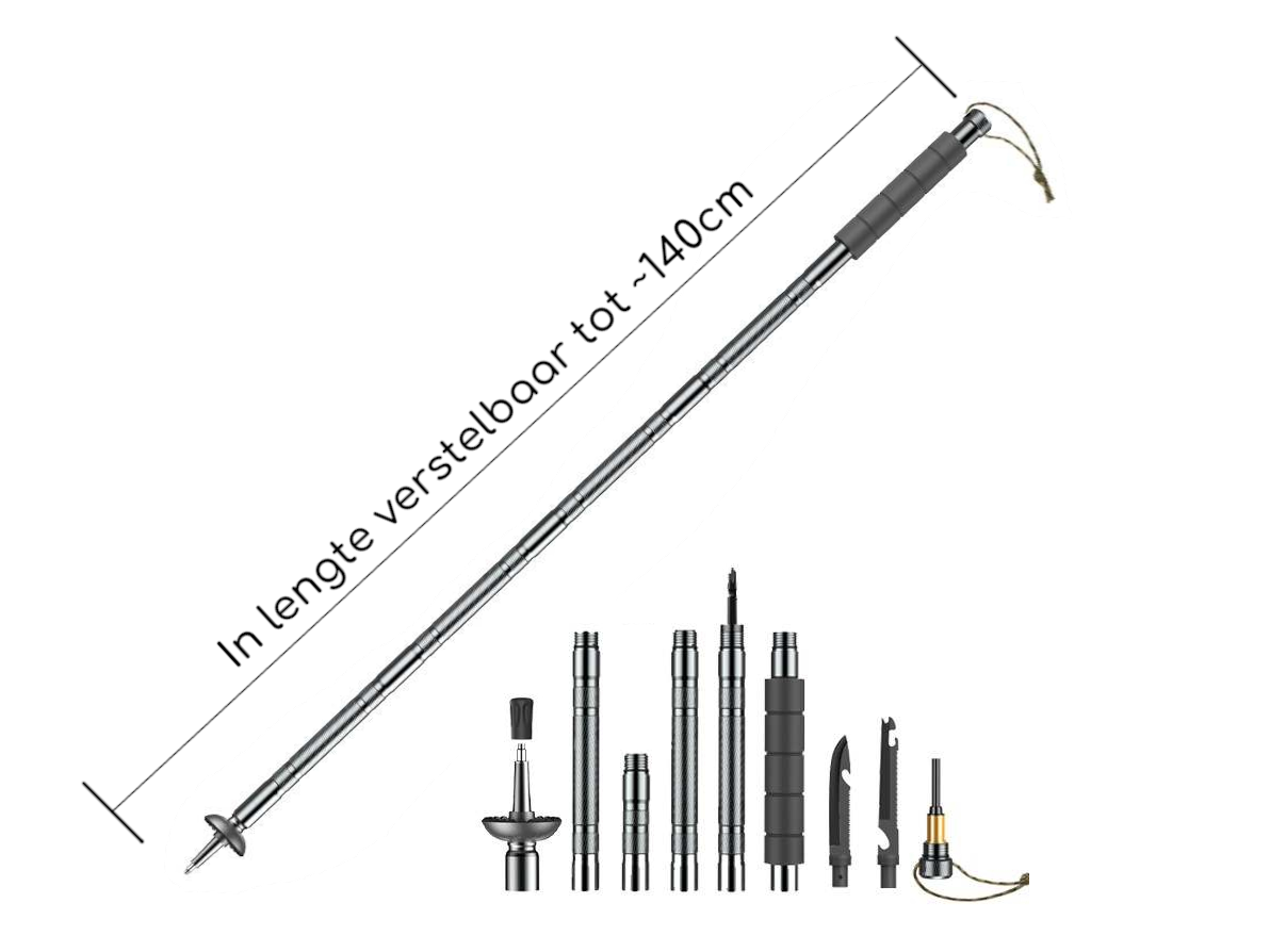 + Meest complete wandelstok voor hiking & survival!