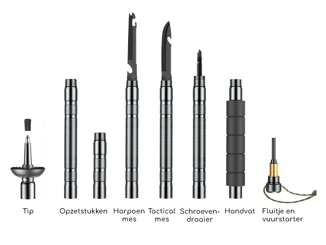 Zeer complete multifunctionele trekkingpole