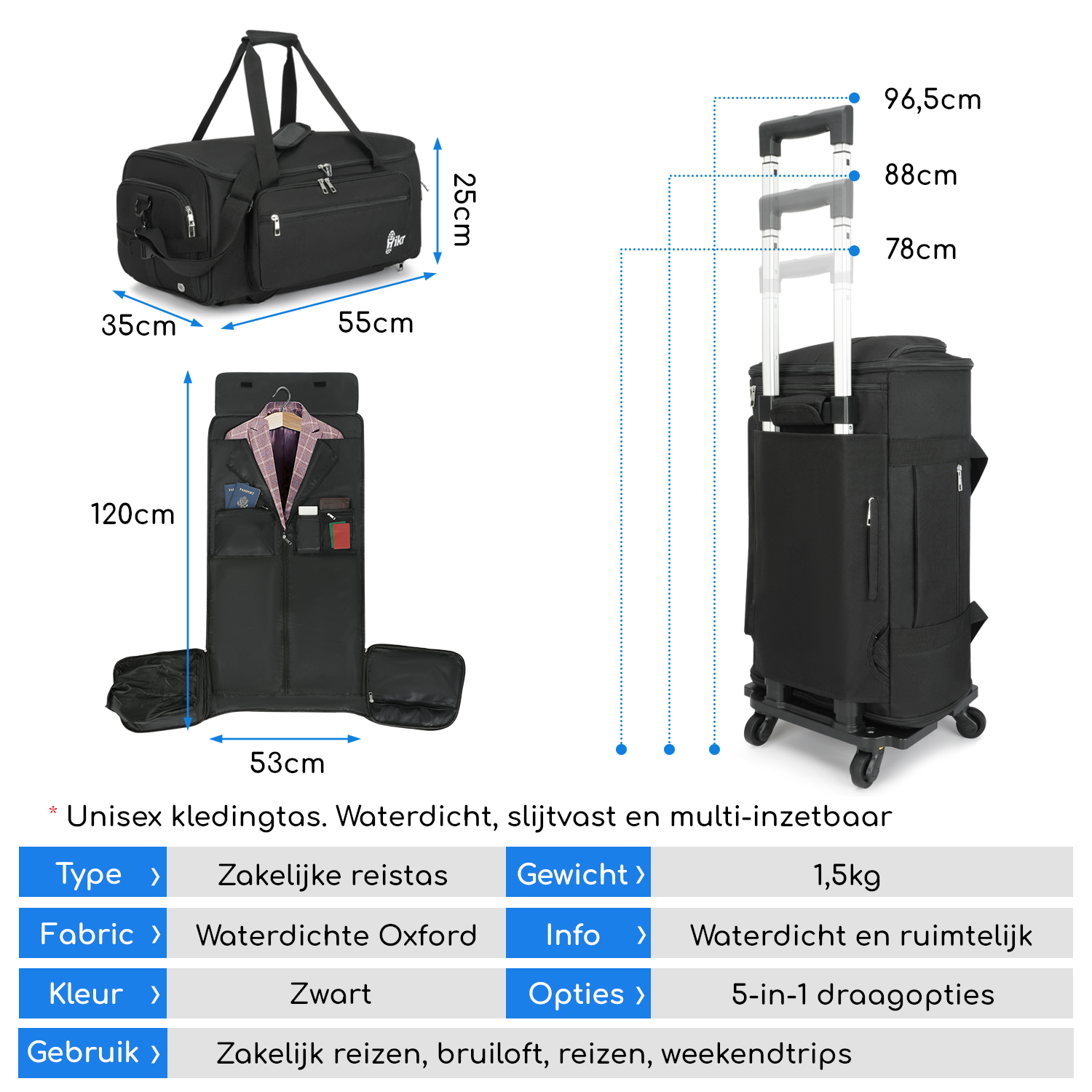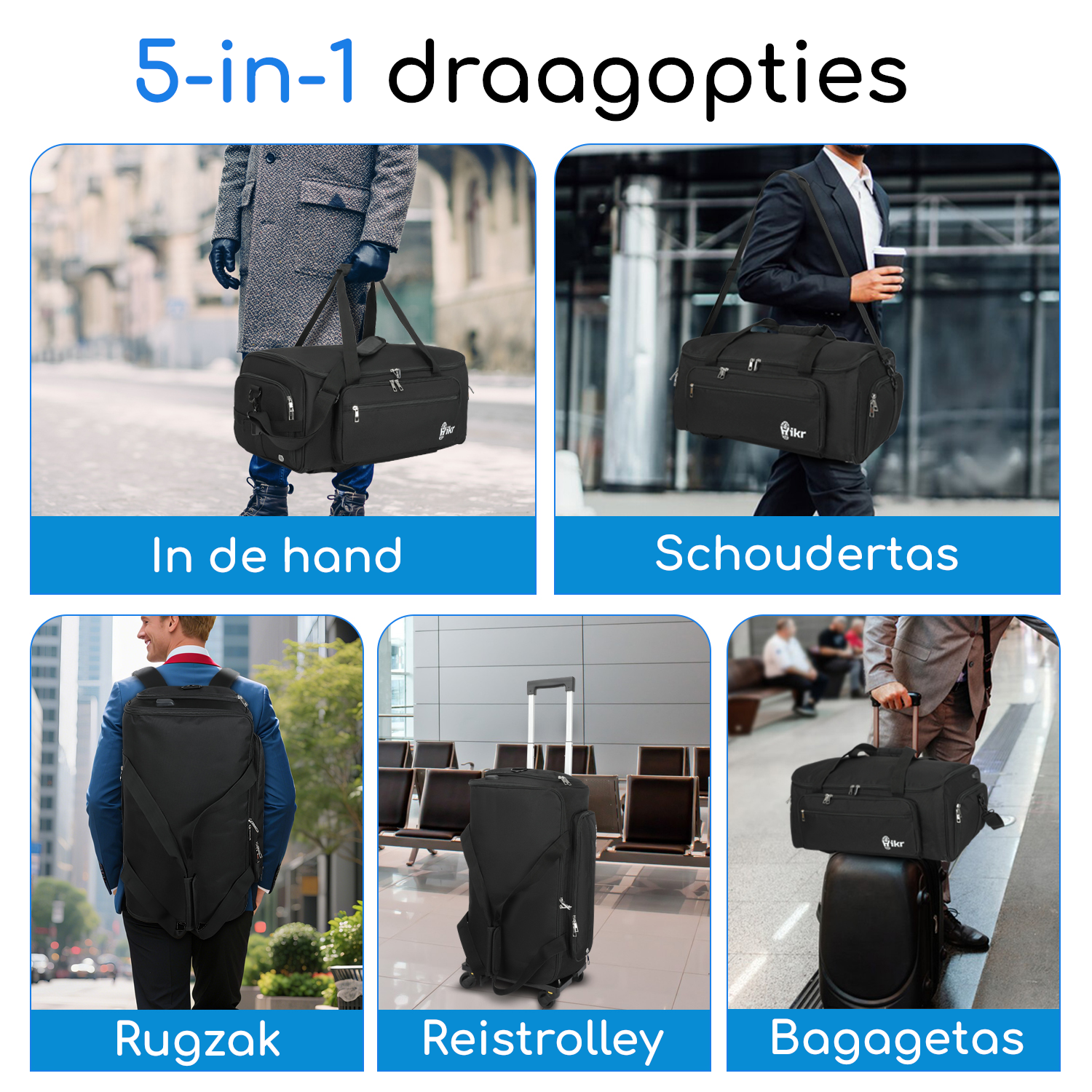 + 5-in-1: trolley, rugzak, schoudertas, handtas of op je koffer