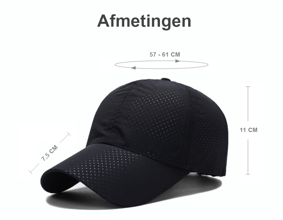 Deze Hikr sportcap heeft een range van maat 57 tot maat 61. Dit betekent dat deze cap de beste fit biedt voor een hoofdomtrek tussen de 57 en 61 centimeter. De omtrek van je hoofd kan je eenvoudig opmeten met een meetlint of een touwtje. In kledingmaten is de maatvoering van deze cap te vergelijken met maat L/XL. Heb je dus een wat kleiner/smaller hoofd, dan zal deze cap waarschijnlijk te groot zijn. Wel is deze cap in grootte aan te passen middels het verstelbandje achterop de pet.
